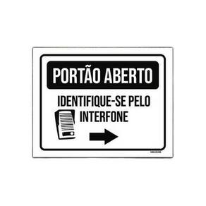 Placa portão averto identifique-se pelo interfone 18x23 Não precisa furar, não empena e nem perde a cor no sol, pode ser rebitada e não rasga - informações do produto: Placas decorativas fabricadas com poliestireno de alto impacto psai de 2mm e adesivo vinil automotivo de alta performance. - medidas: 18cm x 23cm - fixação: Todas as placas possuem adesivo dupla face para aplicação em qualquer tipo de superfície lisa. de 12 meses e disponibilidade imediata. Marca: Não Informado