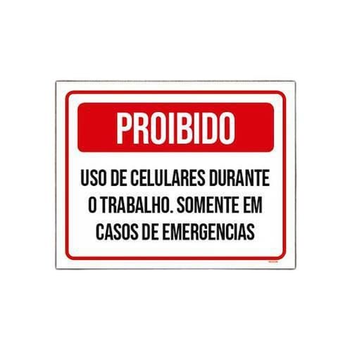 Placa Proibido Uso Celulare Durante Trabalho 27x35 - Informações do Produto: Placas decorativas fabricadas com poliestireno de alto impacto PSAI de 2mm e adesivo vinil automotivo de alta performance. - Medidas: 27cm x 35cm - Fixação: Todas as placas possuem adesivo dupla face para aplicação em qualquer tipo de superfície lisa. de 12 meses e disponibilidade imediata.