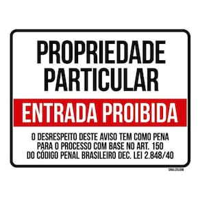 A Placa Propriedade Particular Entrada Proibida 36X46 possui garantia de 12 meses e está pronta para ser enviada imediatamente. Garanta já a sua e mantenha sua propriedade segura e sinalizada de forma adequada.