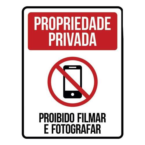 Placa Propriedade Privada Proibido Filmar Fotografar 36x46 Informações do Produto: Placas decorativas fabricadas com poliestireno de alto impacto PSAI de 2mm e impressão ultravioleta. - Medidas: 36cm x 46cm - Fixação: Todas as placas possuem adesivo dupla face para aplicação em qualquer tipo de superfície lisa. de 12 meses e disponibilidade imediata. Marca: Não Informado Ean: 7794723052950