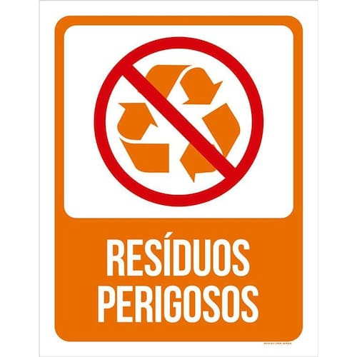 Placa Sinalização Advertência Lixo Resíduos Perigosos 36x46
