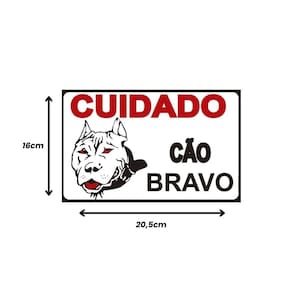 Placa Sinalização Cuidado Cão Bravo Casa Portão 16 X 20,5 Cm