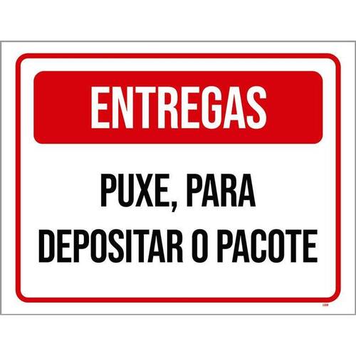 Placa Sinalização Entregas Puxe Para Depositar Pacote 36x46 - Informações do Produto: Placas decorativas fabricadas com poliestireno de alto impacto PSAI de 2mm e adesivo vinil automotivo de alta performance. - Medidas: 36cm x 46cm - Fixação: Todas as placas possuem adesivo dupla face para aplicação em qualquer tipo de superfície lisa. de 12 meses e disponibilidade imediata. Marca: Não Informado Ean: 7794882722978
