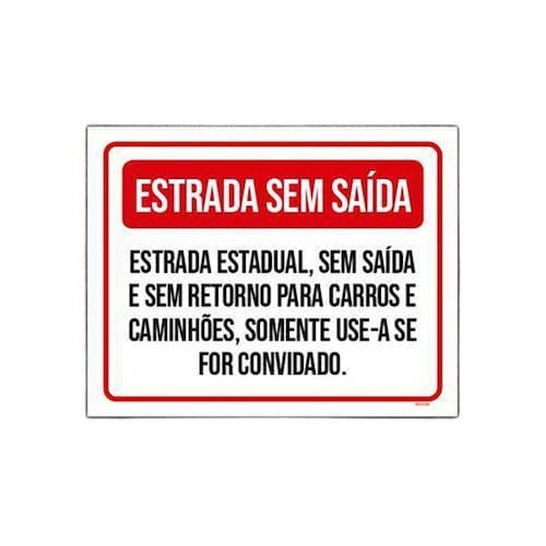 Placa Sinalização - Estrada Sem Saída 27x35 - Informações do Produto: Placas decorativas fabricadas com poliestireno de alto impacto PSAI de 2mm e adesivo vinil automotivo de alta performance. - Medidas: 27cm x 35cm - Fixação: Todas as placas possuem adesivo dupla face para aplicação em qualquer tipo de superfície lisa. de 12 meses e disponibilidade imediata. Marca: Não Informado Ean: 7908839087403