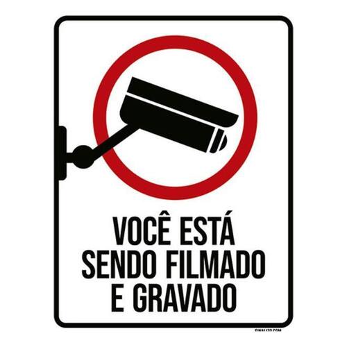 Placa Sinalização - Você Está Sendo Filmado Gravado 36x46 Placas de sinalizaço fabricadas com poliestireno de alto impacto PSAI de 2mm e impressão ultravioleta.