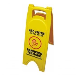 Placa Sinalizadora Para Limpeza-manutenção Dobrável Amarela Produro: Placa sinalizadora Dobrável - Amarela Modelos: Escolha o modelo no campo ao lado da foto e embaixo do campo de . P4 - PLACA SINALIZADORA BANHEIRO FECHADO P5 - PLACA SINALIZADORA PISO MOLHADO P6 - PLACA SINALIZADORA EM MANUTENÇÃO P7 - PLACA SINALIZADORA PISO ESCORREGADIO