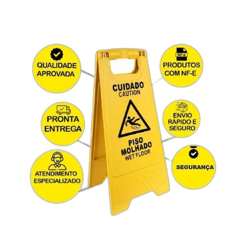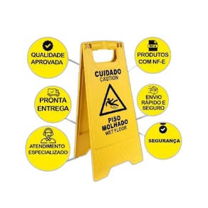 A placa sinalização piso molhado kit c/4 unidades é desenvolvida para prevenir acidentes em áreas que estejam sendo higienizadas ou para alertar sobre locais. Sendo assim fácil higienização, praticidade no transporte e utilização, além de material de alta resistência. Instruções de uso: Abrir a placa e colocar no piso na posição vertical; A placa deve ser disposta de forma a ficar bem visível a todas as pessoas que possam vir a transitar Próximas à área; Limpar e secar a placa após o trabalho. Especificações técnicas Marca: moppita Modelo: sb71005 Tipos de abertura: cavalete Cor: amarelo com escrita preta Utilização: pode ser instaladas em áreas externas, internas e banheiro Função: sinalizador atenção piso molhado Material: plástico injetado pp Placa sinalizadora - piso molhado Emitimos - Obs : a placa de sinalização não possui logo do fabricante Dimensões: - medida da placa aberta: alt.: 57cm x larg.: 30cm x profund.: 44cm - medida da placa fechada: alt.: 61cm x larg.: 30cm x profund.: 2,2cm Marca: Não Informado