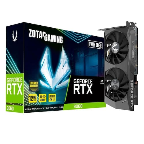 Placa de video zotac geforce rtx 3060 12gb 192bits - zt-a30600e-10m Características:- marca: zotac- modelo: zt-a30600e-10m especificações: destaques:- núcleos de rastreamento de raio de 2 geração- núcleos de tensor de 3 geração - resfriamento avançado icestorm 2.0- controle de ventilador ativo com parada de ventilador freeze- placa traseira de metal- vr ready geral: - gpu: geforce rtx 3060- núcleos cuda: 3584- clock do motor: boost - 1777 mhz memória: - capacidade: 12gb - tipo: gddr6- barramento: 192 bits- clock: 15 gbps- pci express: 4,0 16x saídas de exibição:- 3x displayport 1.4a até 7680x4320 60hz - 1x hdmi 2.1 até 7680x4320 60hz O cabo hdmi de velocidade ultra-alta é necessário para suportar 8k / 60fps ou 4k / 120fps vídeo:- suporte hdcp: 2,3- capacidade de multi display: quad display energia:- fonte de alimentação recomendada: 600w- consumo de energia: 170w- entrada de energia: 8 pinosdetalhes:- directx: 12 ultimate- opengl: 4,6- resfriamento: icestorm 2.0- tamanho do slot: slot duplo- sli: não suportado so compatível: - windows 10 de 64 bits compilação 2004 ou posterior dimensão: - 224,1 x 116,3 x 39,2 mm conteúdo da embalagem:- placa de vídeo zotac- manual do usuáriogarantia:1 ano de garantia 9 meses de garantia contratual junto ao fabricante + 3 meses referentes à garantia legal, nos termos do artigo 26, ii, do código de defesa do consumidor peso:1667 gramas bruto com embalagem