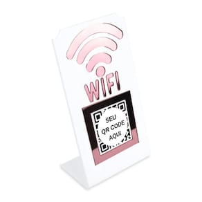 Placa Wifi Qr Code Display Acrílico De Balcão Branco E Rosa
