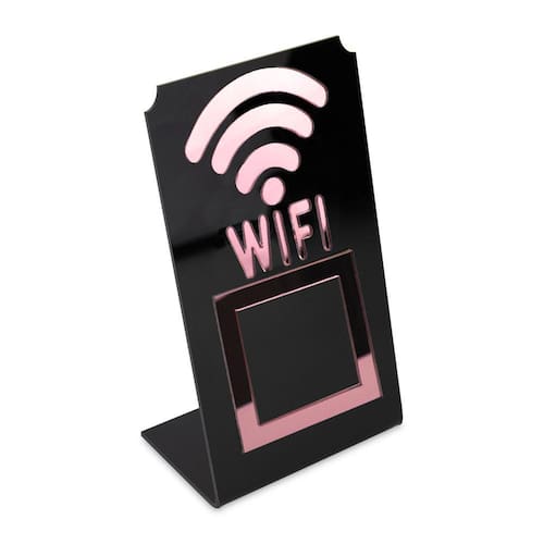 O Display de Acrílico com suporte de mesa é a solução perfeita para facilitar o uso do Wif em seu estabelecimento. Esse prático suporte permite que você coloque um QR code do Wifi de forma visível e acessível aos seus clientes, simplificando a conexão a internet para o conforto do cliente, facilitando envio de comprovantes de pagamentos e acesso ao banco. Uma solução prática e esteticamente agradável para compartilhar informações de rede Wi-Fi de forma rápida e eficiente. Projetadas com um material durável e esteticamente limpo e agradável.