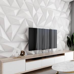 Placas 3d De Parede Revestimentos Decorativos Trapézio 10m Quantidade do anuncio: 10m 120 placas Modelos: TRAPÉZIO Todas as placas são da cor branca As placas são de poliestireno PSAI plástico Tamanho: 50x22cm Espessura: 1 mm