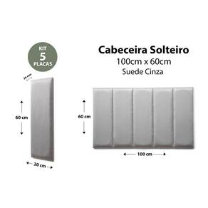 Placas Cabeceira Modulada Adesiva Solteiro Estofada 100cm x 60cm Kit 5 Placas - Suede Cinza