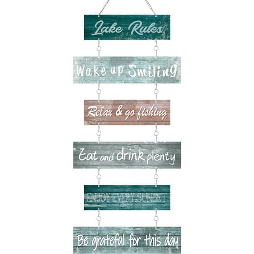 A decoração do lago para casa de verão é principalmente em azul lago, marrom e outras cores, decorada com grãos de madeira rústica, dando um toque diferente à placa, adequada para chalé, cabana, fazenda, casa, escritório, cozinha, banheiro e assim por diante.