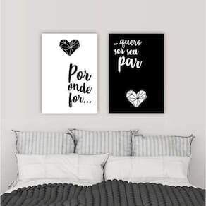 Kit 2 quadros decorativos quarto casal 50x35cm por onde for quero ser seu par