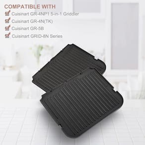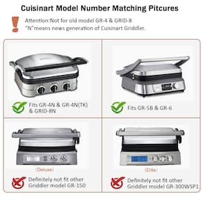 Substituição de placas de grelha FOCOllK Cuisinart projetadas para as séries Cuisinart Griddler Gourmet GR-4N / GR-4N(TK) / GR-5B e GRID-8N, pode lidar com tudo, desde panquecas a salsichas, queijo grelhado a bifes, hambúrgueres e Panini, mas não para os modelos antigos GR-4 e GRID-8, não para os modelos GR-300W, GR-300W, GR-300W, GR-3. 00WSP1 Elite ou GR-150P1, GR150 Deluxe. Dica de uso: 1\A chapa reversível foi tratada com um revestimento antiaderente especial, antes do primeiro uso, sugerimos que você tempere as grades com spray de cozinha ou óleo vegetal sem sabor, se estiver usando óleo, aplique óleo com uma toalha de papel ou pincel de pastelaria, você pode achar útil repetir esse processo antes de cada uso das placas de waffle. 2\Nunca use utensílios de metal, pois eles danificarão o revestimento antiaderente. A peça inclui: Placas de grelha/grelha (2), livro manual (1) Tamanho do produto: 29,3 x 23,5 x 1,3 cm - Substituição de pratos de grelha reversível cuisinart para grelha Cuisinart, ótimo para peito de frango grelhado, bife assado, espetos de churrasco, crepes e muito mais, cozinhe facilmente uma refeição inteira, traga eficiência para cozinhar e economize mais tempo para sua vida familiar, incluindo um conjunto de 2 peças - Ótimo para substituição de placas de grelha cuisinart, feito de liga de alumínio com óleo pulverizado de teflon de camada dupla, placas de revestimento antiaderentes para liberação de alimentos sem esforço e limpeza fácil, também feito de materiais de grau alimentício, sem BPA, não precisa se preocupar com a segurança do produto, completamente contatável com alimentos - Durável de usar, serve para as séries Cuisinart Griddler Grill GR-4N /GR-4N (TK)/GR-5B/GR-6 e GRID-8N, não serve para os modelos antigos GR-4 e GRID-8, definitivamente não serve para outros modelos de grelha GR-150, GR150P1 Deluxe, GR-300WSP1 Elite - Substituição de placas de grelha cuisinart de primeira escolha, fácil de instalar e remover placas da máquina de grelhar, destacável. Pode ir à máquina de lavar louça facilita a limpeza, recomenda-se lavar à mão com sabão para proteger o antiaderente para uso prolongado - Presente ideal para Cuisinart Griddler, garantia de 1 ano, consulte o manual do usuário antes de usar, se você tiver alguma dúvida, não hesite em entrar em contato conosco