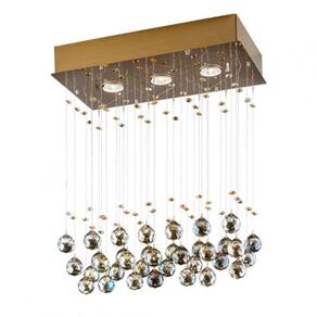 Plafon Crystal Ball. Modelo 3 luzes. Versão Gold/ âmbar. Potência máxima 50W. Corpo em aço inox. Cristais de alta iridescência. Utilizar lâmpadas GU10. Cinco anos de garantia. Suas gotas de cristais suspensas criam uma iluminação única ao ambiente, os reflexos gerados por esses cristais proporcionam um ambiente aconchegante e acolhedor. Acabamento: Cristais de Alta Iridescência Acompanha Lâmpada: Não Altura: 57 Ambiente de Iluminação: Interno Ambiente Principal: Sala de Estar Cor: Âmbar Cor do Acabamento: Transparente Cor do Produto: Âmbar Cor Predominante: Transparente Formato: Retangular Garantia do Fornecedor: 5 anos Largura: 26 Material Principal: Aço Peso: 4.54 Profundidade: 46 Quantidade de Itens: 1 Tipo de Plafon: Embutir Voltagem: Bivolt