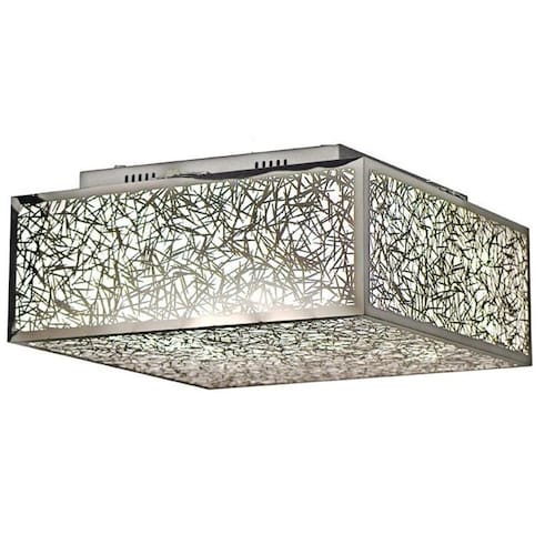 Plafon apolo inox quadrado para led 40 x 40 cm Plafon apolo em inox cromado, com design arrojado e super moderno pelos cortes retos e pelo desenho recortado a laser na lamina de inox, dentro possui uma película de pvc brilhante que proporciona um efeito claro e aconchegante, luminária leve e fácil de instalar é indicada para salas, quartos, corredores, hall de entrada e escritórios. Seus materiais são pvc e metal. Comporta 3 lâmpadas de soquete e27 de led com potência de 20w não inclusas . Plafon apolo cromado com cúpula de inox recortado a laser e película de pvc interna brilhante. Utiliza 03x led-e27. Não acompanha lâmpadas. Produto montado. Medidas: l 40 - p 40 - a 15 cm. Bivolt. Marca: Não Informado