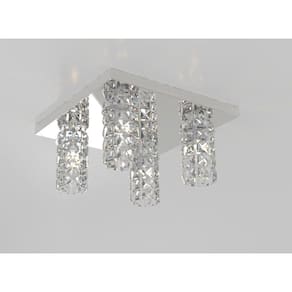 Material: Inox espelhado Medidas: 30x30cm x Altura: 17cm Cristal : Quadradinho 22mm Transparente Lâmpadas: 04 Lâmpadas Modelo G9 Obs. Lâmpadas não inclusa no produto Compatível com Lâmpadas de Led G9 Modelo: Sobrepor / Bivolt Peso: 3,5 kg : 90 dias contra defeito de fabricação Ean: 7898664321134