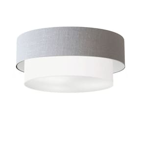 Plafon Duplo Cilíndrico Vivare Md-3024 Cúpula em Tecido 60x50cm - Bivolt - Cor: Rustico-cinza-branco | Voltagem: 127/220V