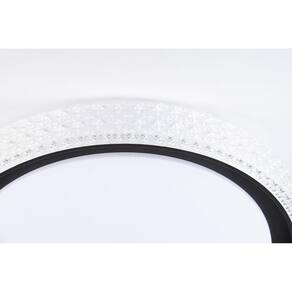 Feito em policarbonato e acrílico, o plafon possui um diâmetro de 50cm e uma altura de 7cm. Sua potência é de 36w, com um fluxo luminoso de 2.900 Lumens. Além disso, ele conta com um led integrado que oferece três opções de tons de luz: amarelada 3.000k , neutra 4000k e fria 6500k .