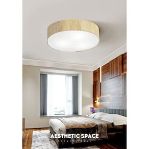 Plafon Luminária de teto decorativa para casa, Md-3076 nórdicas em tecido e madeira 3 lâmpadas com difusor em poliestireno