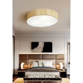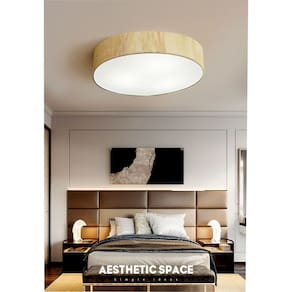 Plafon Luminária de teto decorativa para casa, Md-3076 nórdicas em tecido e madeira 3 lâmpadas com difusor em poliestireno