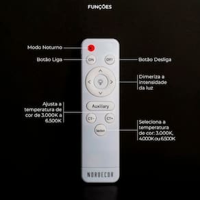 Plafon Nordecor Kenle 2664 Redondo Led Bivolt Preto Preto 2664 - Dimensões AxLxP (mm): 70x500- Cor: Preto- Material: Metal e Policarbonato- Garantia: 1 ano junto ao fabricante- Referência: 2664- Voltagem: Bivolt- Fluxo Luminoso: 2900 lúmens- Potência: 36W- Local de Uso: Interno- Temperatura da Cor: Ajustável: 3000K - Branco Quente, 4000K - Luz Neutra, 6500K - Branco Frio- Modelo/Tecnologia: LED Embutido- Ângulo de Abertura: 120- Grau de Proteção: IP20- Observação: Com função que memoriza a temperatura de cor escolhida sempre que ligar, através do interruptor.- Controle Remoto: Possui função de dimerização e troca de temperatura de cor O que vem na caixa:1 Plafon1 Controle Remoto para dimerização e troca de temperatura de cor
