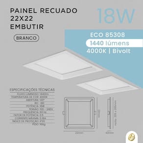 Com um design quadrado e acabamento branco, esse painel oferece um visual moderno e discreto que se integra perfeitamente à sua decoração. Disponível na cor de luz 4000K. Seja para realçar detalhes, iluminar ambientes ou criar uma sensação acolhedora, o Painel Recuado de Embutir é a escolha perfeita. Transforme a iluminação do seu espaço com estilo e sofisticação.