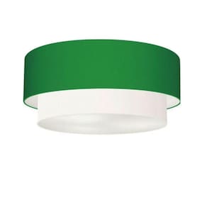 Plafon Para Banheiro Duplo Cilíndrico Vivare SB-3024 Cúpula Tecido 60x50cm Cor Verde Folha / Branco - Bivolt