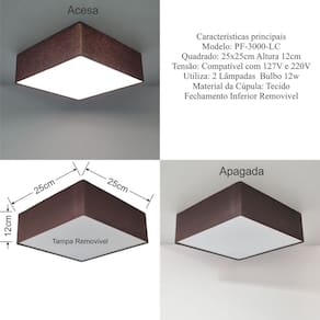 - Tampa removível para facilitar a manutenção e troca de lâmpadas