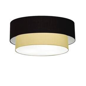 Plafon Para Quarto Duplo Cilíndrico Vivare SQ-3064 Cúpula Tecido 70x60cm Cor Preto / Bege - Bivolt