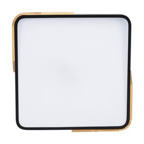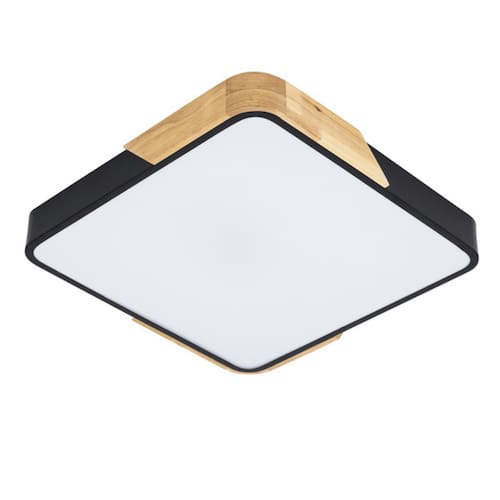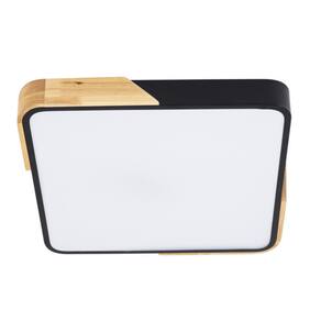 Plafon Quadrado Preto com Detalhe Estilo Madeira 40cm Led 30W 3 em 1 Bivolt