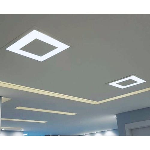 Luminária embutir em formato quadrado feita em metal com efeito luz indireta onde a luz rebate na parte interna formando uma especie de sanca de gesso com boa distribuição da luz no ambiente esse modelo de luz indireta quadrado possibilita a instalação em diversos tipos de ambientes contribuindo com a decoração.