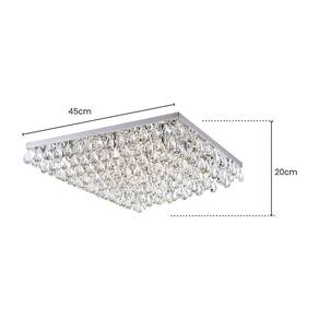 Dimensões AxLxP (mm): 200x450x450;Cor: Cromado e Transparente;Material: Metal e Cristal;Garantia: 180 dias junto ao fabricante;Voltagem: Bivolt;Lâmpada Inclusa: Não;Local de Uso: Interno;Número de Lâmpadas: 8;Potência Máxima (por soquete): 25W;Soquete: G9;