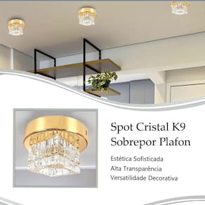 Plafon Spot Cristal Sobrepor Dourado Banheiro Bet44 + Led