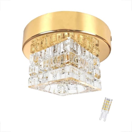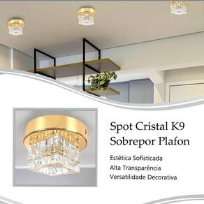 Plafon Spot Cristal Sobrepor Dourado Banheiro Bet44 + Led