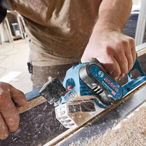 A plaina a bateria bosch gho 12v-20, 12v, possui motor brushless sem escovas de carvão livre de manutenção, com o dobro de vida útil e maior autonomia. Sua construção robusta do alojamento de plaina usinado com bloco de alumínio garante maior robustez para qualquer tipo de trabalho em marcenaria e maior durabilidade. Vem com porta-faca para segurar uma segunda faca de aplainar e é 100% compatível com baterias e carregadores 12v bosch.