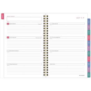 - MESES COM ABAS — Páginas mensais espaçosas e com guias ajudam você a acompanhar seus planos. Blocos diários não controlados, espaço para anotações e calendários de referência passados/futuros para que você possa planejar com antecedência.