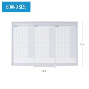 Agenda de quadro branco MasterVision Magnetic Dry Erase trimestral de 3 meses, montagem na parede, bandeja deslizante, 24" x 36", moldura de alumínio, dourada (GA03204830), 2' x 3'