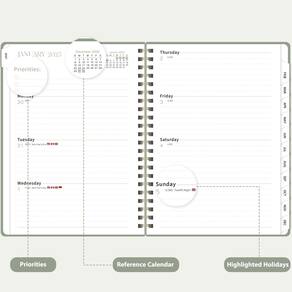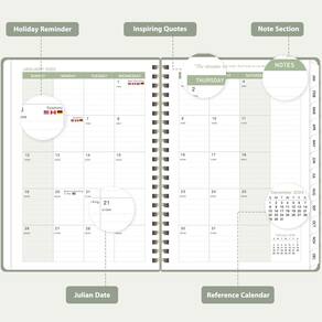 O que você recebe? Um planejador de 12 meses vai de janeiro de 2025 a dezembro de 2025 Especificações Marca: VALCOME Tamanho: 16 cm x 21 cm Cor: verde Vantagens 1. Cobertura estendida: abrangendo 12 meses, de janeiro de 2025 a dezembro de 2025. 2. Marcações claras: inclui feriados e datas julianas 3. Calendários de referência: dois calendários de referência para acesso rápido. 4. Tamanho perfeito: 16 cm x 21 cm 5. Seção de notas adicionais. 6. Papel de alta qualidade: feito com papel resistente a sangria para garantir uma escrita suave. 7. Descanso profissional: capa frontal planejadora | cantos de proteção | Visão geral anual | contatos | Informações de referência rápida | abas internas mensais | feriados | Páginas semanais e mensais | Encadernação com fio duplo | Bolso interno | Fecho elástico Cenário aplicável Uso no escritório, escola e acadêmicos, planejamento doméstico, fitness e definição de metas, negócios e varejo, presentear, planejamento de viagens e férias, etc. - Planejador 2025: a agenda (15 x 21 cm) cobre 12 meses de janeiro a dezembro de 2025, apresentando uma página de planejamento semanal e mensal. Também inclui páginas adicionais, como uma visão geral anual, datas importantes e uma página de contatos para ajudar você a manter seus horários, prioridades e prazos em ordem. - Planejamento mensal: a agenda apresenta calendários de referência do mês anterior e seguinte, lembretes importantes de feriados para planejamento de longo prazo, blocos de escrita diários e uma seção de notas dedicada para detalhes adicionais. Com guias mensais convenientes e citações motivacionais, foi projetado para inspirar e ajudar a organizar sua vida, trabalho ou estudo. - Planejamento semanal: as páginas semanais oferecem amplo espaço de escrita para um planejamento mais detalhado, facilitando o acompanhamento de seus compromissos, listas de tarefas e anotações. - Estilo e função: esta agenda durável possui papel grosso, uma capa dura resistente à prova d'água, abas mensais, encadernação de fio duplo, bolso interno e um fecho elástico para conveniência. - Presente prático: estilo sangramento com funcionalidade, esta agenda 2025 é um presente perfeito para ajudar a família, amigos ou colegas a se manterem organizados durante todo o ano.