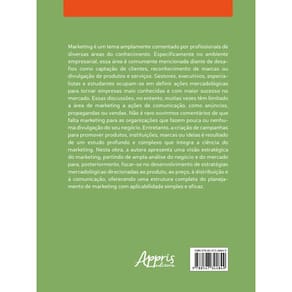 Marketing é um tema amplamente comentado por profissionais de diversas áreas do conhecimento. Especificamente no ambiente empresarial, essa área é comumente mencionada diante de desafios como captação de clientes, reconhecimento de marcas ou divulgação de produtos e serviços. Gestores, executivos, especialistas e estudantes ocupam-se em definir ações mercadológicas para tornar empresas mais conhecidas e com maior sucesso no mercado. Essas discussões, no entanto, muitas vezes têm limitado a área de marketing a ações de comunicação, como anúncios, propagandas ou vendas. Não é raro ouvirmos comentários de que falta marketing para as organizações que fazem pouca ou nenhuma divulgação do seu negócio. Entretanto, a criação de campanhas para promover produtos, instituições, marcas ou ideias é resultado de um estudo profundo e complexo que integra a ciêcia do marketing. Nesta obra, a autora apresenta uma visão estratégica do marketing, partindo de ampla análise do negócio e do mercado para, posteriormente, focar-se no desenvolvimento de estratégias mercadológicas direcionadas ao produto, ao preço, à distribuição e à comunicação, oferecendo uma estrutura completa do planejamento de marketing com aplicabilidade simples e eficaz.