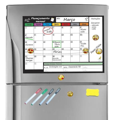 Planner mensal planejador magnético geladeira emoticons imã Esse kit parece perfeito para quem gosta de manter a rotina organizada de forma prática e divertida. Este planejador mensal magnético é ideal para anotar compromissos, tarefas e eventos diretamente na geladeira. Os emoticons ajudam a destacar eventos importantes ou simplesmente adicionar um toque de personalidade às anotações.