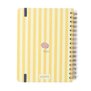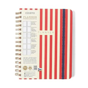 Este Planner tem capa dura, cantos arredondados, elástico para fechamento e encadernação em Wire-O (espiral duplo).