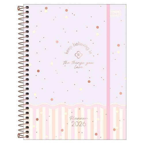 Se você busca um produto inspirado nas principais tendências de moda para se organizar, o planner espiralado soho da tilibra é a escolha perfeita. O produto tem tamanho 17,7 x 24 cm, capa dura com detalhes metalizados, fechamento com elástico e folhas com visões anual, mensal e semanal. Este planner 2026, que possui 80 folhas em papel creme, com gramatura de 90 g/m, é a escolha ideal para manter todas as tarefas e compromissos bem programados. Detalhes: bolsa de papel decorada capa: com detalhe metalizado capa acabamento: com detalhe metalizado e com relevo conteúdo: controle de hábitos, controle financeiro, listas, metas e objetivos e página para planejamento do futuro espiral colorido fechamento: com elástico folha de adesivos folhas: em papel creme e para anotações material: capa dura com acabamento metalizado parte interna da capa decorada produto certificado: fsc visão: anual, mensal e semanal formato: 177mm x 240mm gramatura: 90 g/m número de folhas: 80 folhas atenção: imagem meramente ilustrativa. Pode ocorrer mudanças no tom da cor da tela do celular/pc para o produto real ou mudanças na embalagem do produto sem aviso prévio por parte do fabricante. Marca: Não Informado