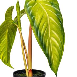 - Design realista de Alocasia: apresenta folhas verdes brilhantes e realistas com veios brancos marcantes, imitando a beleza da planta Alocasia Frydek.