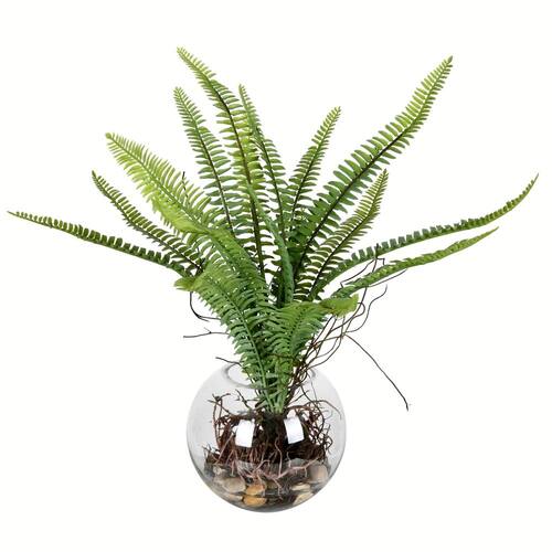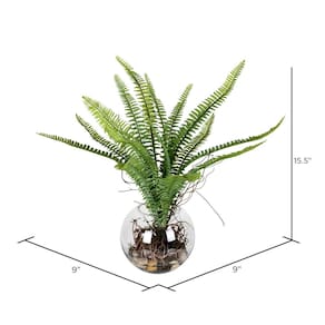 Vickerman Samambaia verde artificial para ambientes internos de 39,36 cm – Vaso de vidro transparente – Folhagem realista de poliéster durável – Sem manutenção