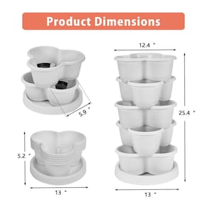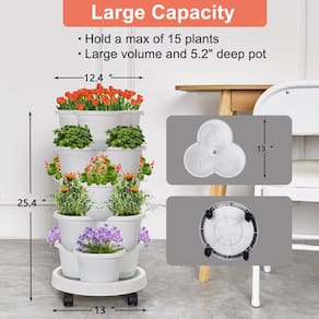 VECELO Plantador de jardim vertical de 5 níveis, vasos empilháveis autoirrigáveis com rodas para morangos, ervas, flores, legumes, branco - Economia de espaço: este plantador de morango maximiza seu espaço de jardinagem empilhando 5 camadas para cultivar mais plantas em uma área compacta. O vaso de torre de morango é ideal para pátios, varandas ou uso interno. - Autodrenagem eficiente: o recurso de drenagem embutido deste plantador de jardim vertical evita o encharcamento, mantendo as plantas saudáveis ao canalizar automaticamente o excesso de água. - Retenção de umidade do solo: Projetado para manter os níveis ideais de umidade, o plantador vertical greenstalk mantém o solo hidratado por mais tempo, reduzindo a necessidade de irrigação frequente e ajudando as plantas a prosperar. - Fácil de mover: as rodas móveis do pote de morango tornam a torre vertical do plantador simples de transportar para uma ótima exposição ao sol ou para reorganizar espaços. - Adequado para várias plantas: este vaso em camadas é perfeito para ervas, flores, vegetais ou suculentas. Este vaso acomoda diversos tipos de plantas, permitindo que você construa um mini jardim com facilidade.