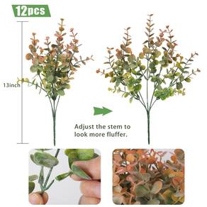 O pacote contém: 12 feixes de hastes artificiais de plantas vegetais. Materiais: plantas de eucalipto artificiais realistas são feitas de materiais de alta qualidade, e o caule principal é feito de arame envolto em plástico. Este spray artificial de folhas de eucalipto tem um toque real e é um verde absolutamente bonito para adicionar à decoração da sua casa ou configuração de casamento. A decoração perfeita: os arbustos artificiais de buxo são perfeitos para vasos e centros de mesa de mesa. Estas plantas artificiais são adequadas para decorar salas de estar, corredores, paredes, varandas, cafés, janelas, casas de fazenda, escadas, paredes, mesas, prateleiras, quartos, banheiros, ao ar livre, jardins, vasos e artesanato faça você mesmo. Arbustos artificiais para ambientes externos: você pode combinar hastes de vegetação artificial em buquês à vontade ou misturá-las com outras flores, vibrantes e realistas. Estas plantas artificiais de buxo são perfeitas para casamentos, noivados, aniversários, decorações de festa e decorações diárias de casa, também podem ser usadas para grinaldas, suportes de flores, vasos, decorações de mesa. - ?12 feixes de buxo artificiais? - Você receberá 12 feixes de plantas de vegetação artificial, cada uma com cerca de 36 cm de comprimento, e você pode usar esses caules artificiais de eucalipto sozinhos ou faça você mesmo em arbustos falsos densos. - Aparência realista: a aparência dessas plantas artificiais exuberantes e empoeiradas caules ao ar livre parece mais realista e macia e realista, imitando a textura das plantas reais. Elas não precisam de manutenção, não precisam de água, não precisam de luz solar, elas nunca murcham. Mantenha-se fresco e vibrante durante todo o ano para adicionar um toque de verde ao seu espaço. - ?Arbustos artificiais para uso ao ar livre?- Você pode combinar hastes de vegetação artificial em buquês à vontade ou misturá-las com outras flores, vibrantes e realistas. Estas plantas artificiais de buxo são perfeitas para casamentos, noivados, aniversários, decorações de festa e decorações diárias de casa, também podem ser usadas para grinaldas, suportes de flores, vasos, decorações de mesa. Antes de comprar, certifique-se de que as dimensões deste produto e o conteúdo da embalagem. - ?Enchimento de plantador para plantas artificiais?- Os arbustos artificiais de buxo são ideais para decorações internas e externas, adequados para qualquer decoração de casa. As hastes de plantas falsas podem ser decoradas em jardins, escritórios, varandas, casamentos, terraços, hotéis, jardins e outras ocasiões para criar uma atmosfera verde e relaxada. - ?Nosso serviço pós-venda?-É normal que as plantas artificiais recebidas tenham um leve odor. Você pode deixar as hastes verdes em um ambiente ventilado por 1 ou 2 dias e ela terá um cheiro melhor. Se você receber algum problema de qualidade do produto ou tiver alguma dúvida sobre nossas plantas artificiais de buxo, por e-mail e forneceremos mais opções de serviço pós-venda.