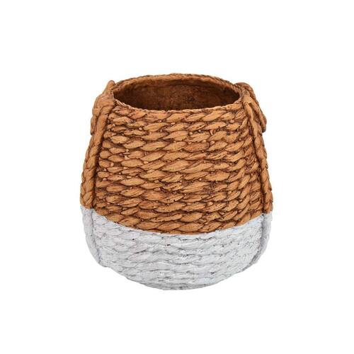 Plantador Benjara Reno de 12 polegadas, design de corda, resina com acabamento em branco e marrom