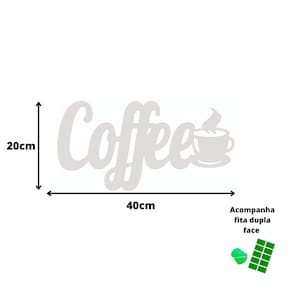 PARA DECORAR AQUELE CANTINHO DO CAFÉ, DANDO UMA CARA PERSONALIZADA E AGRADÁVEL AO AMBIENTE. 1 PLACA coffe COM 3MM DE ESPESSURA E MEDIDA DE 40X20CM. CORTE REALIZADO A LASER. A PLACA JÁ VAI COM FITA DUPLA FACE PARA FIXAÇÃO, BASTA RETIRAR E APLICAR NA PAREDE, NÃO É NECESSÁRIO FURAR. ALÉM DA PAREDE, TAMBÉM PODE SER APLICADO EM AZULEJOS, MADEIRAS, VIDROS, MÓVEIS, GELADEIRAS, PORTAS, ETC. LIMPEZA DEVE SER EFETUADA COM PANO SECO OU ÚMIDO. Marca: Não Informado